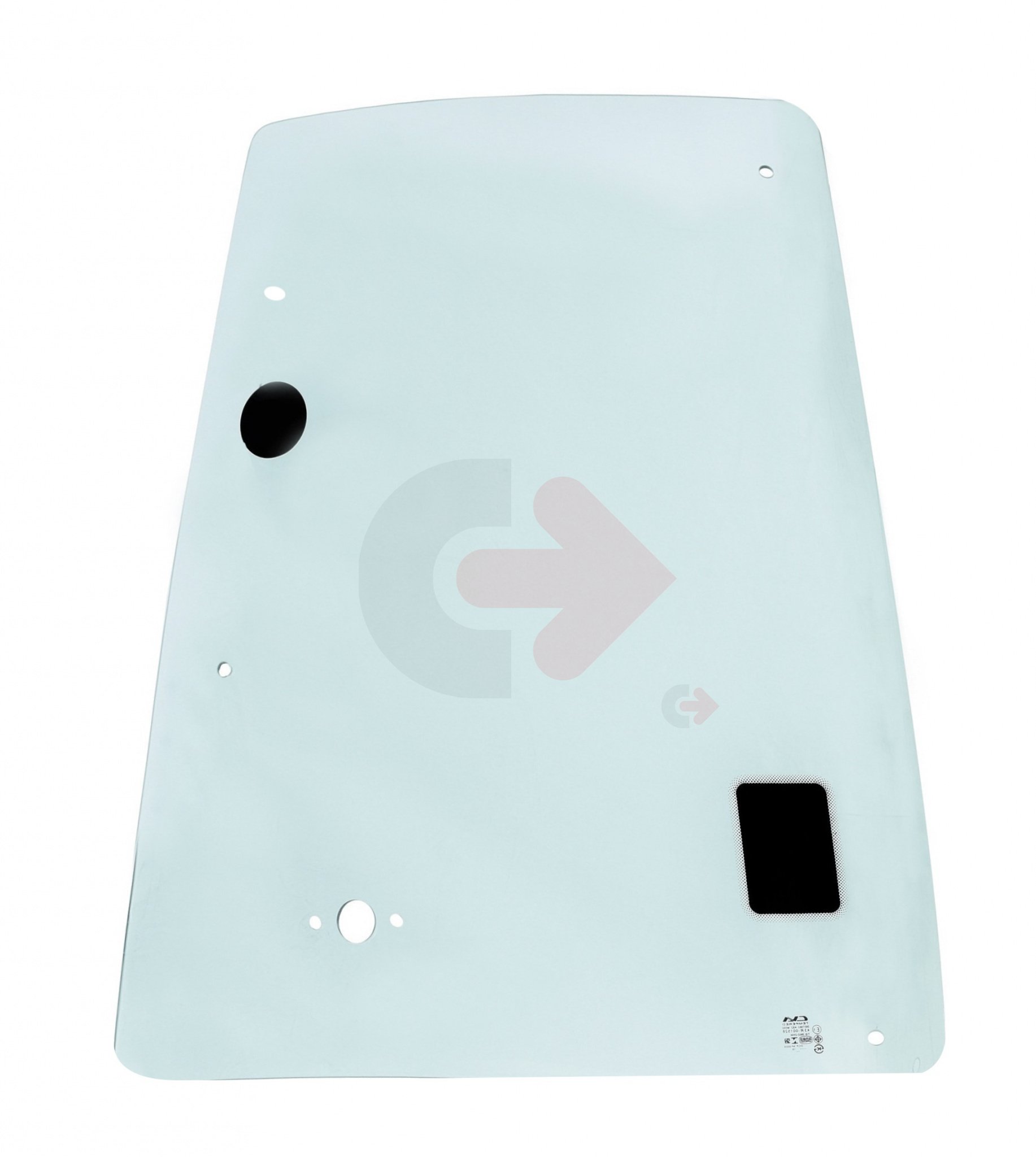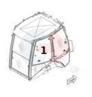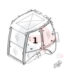 Horní boční sklo za dveřmi, pravá strana pro rýpadlo-nakladače CATERPILLAR.