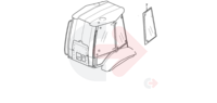 Boční sklo levé za dveřmi vlevo pro rýpadlo-nakladače VOLVO.
