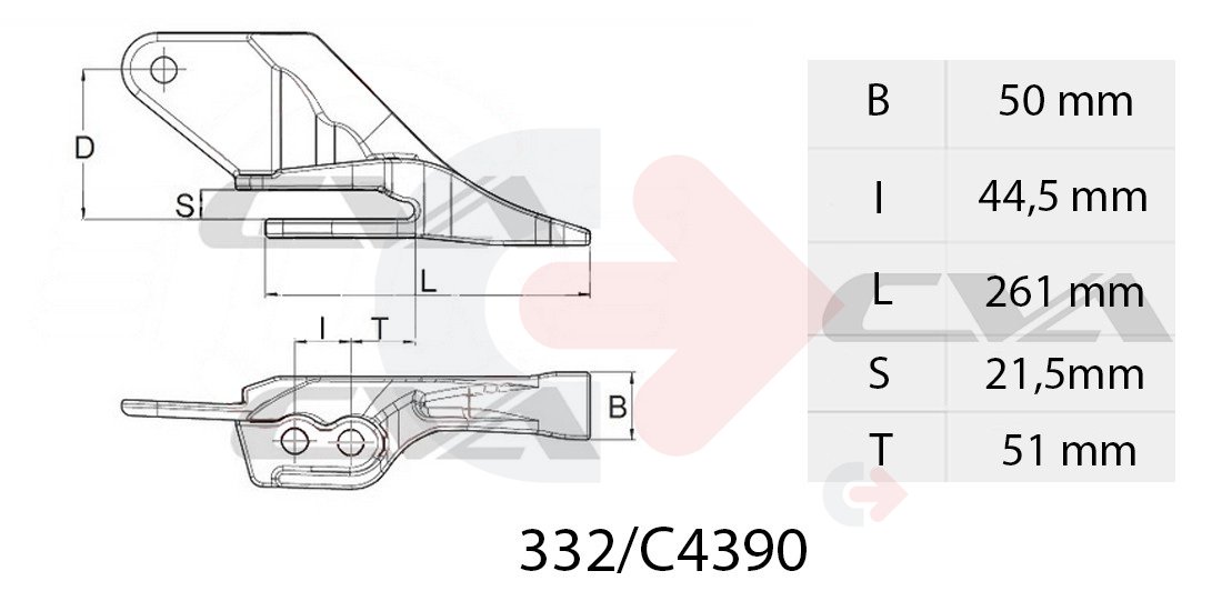 Pravý boční zub pro nový typ lžic rýpadla a nakladače.
