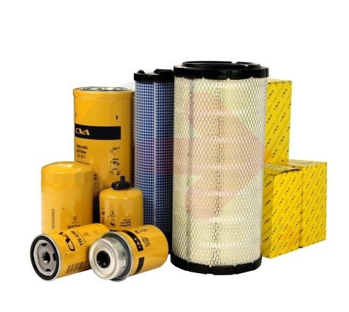 Sada filtrů používaných ve stavebních strojích CATERPILLAR.