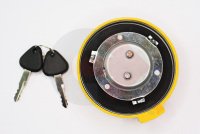 Víčko palivové nádrže s klíči používané ve stavebních strojích VOLVO.