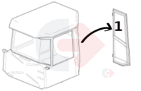 Sklo horních dveří pro nákladní vozidlo Volvo řady D vyrobené v letech 2000 až 2007 a nákladní vozidlo řady E vyrobené v letech 2007 až 2011.