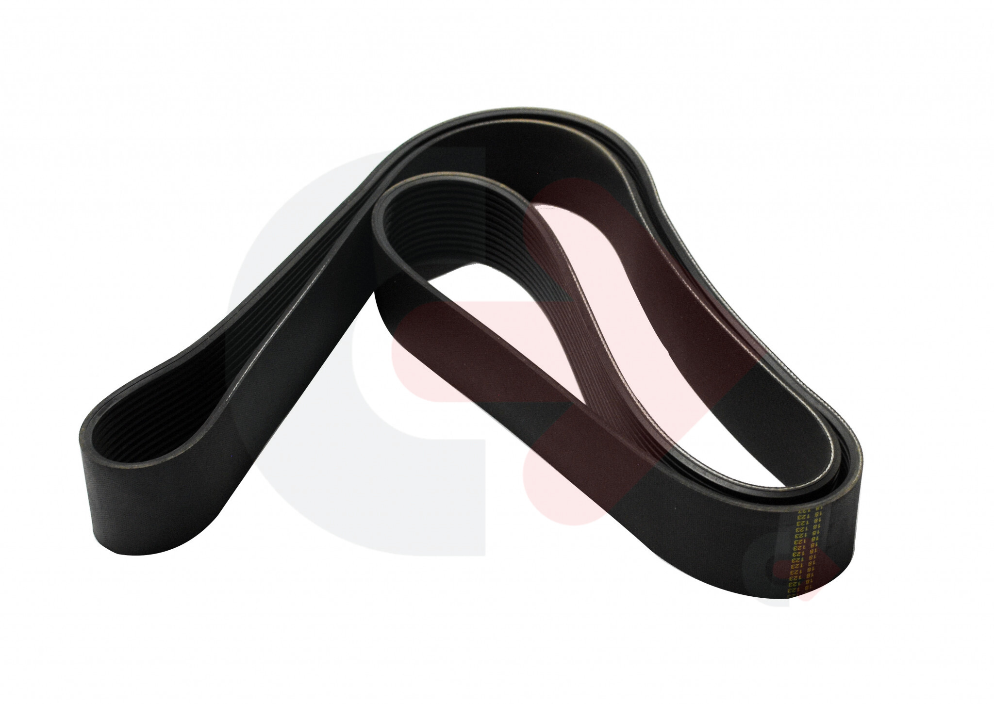 Rozvodový řemen používaný u stavebních strojů Caterpillar.