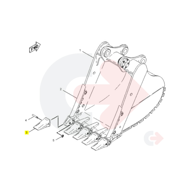 Zub J460 použitý na lopatách nakladače a bagru ve stavebních strojích CATERPILLAR.