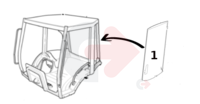 Sklopné zadní sklo pro rýpadlo-nakladače JCB.