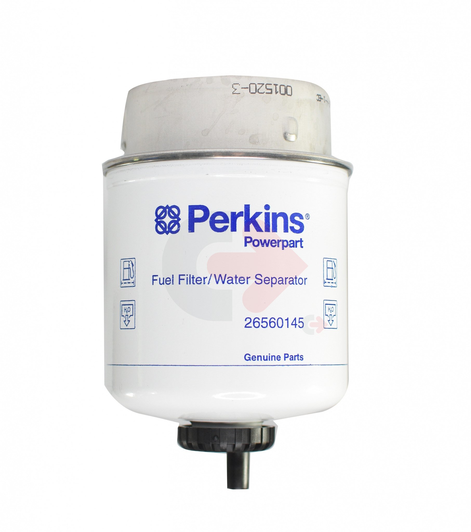 Palivový filtr se separátorem používaný ve strojích Caterpillar.