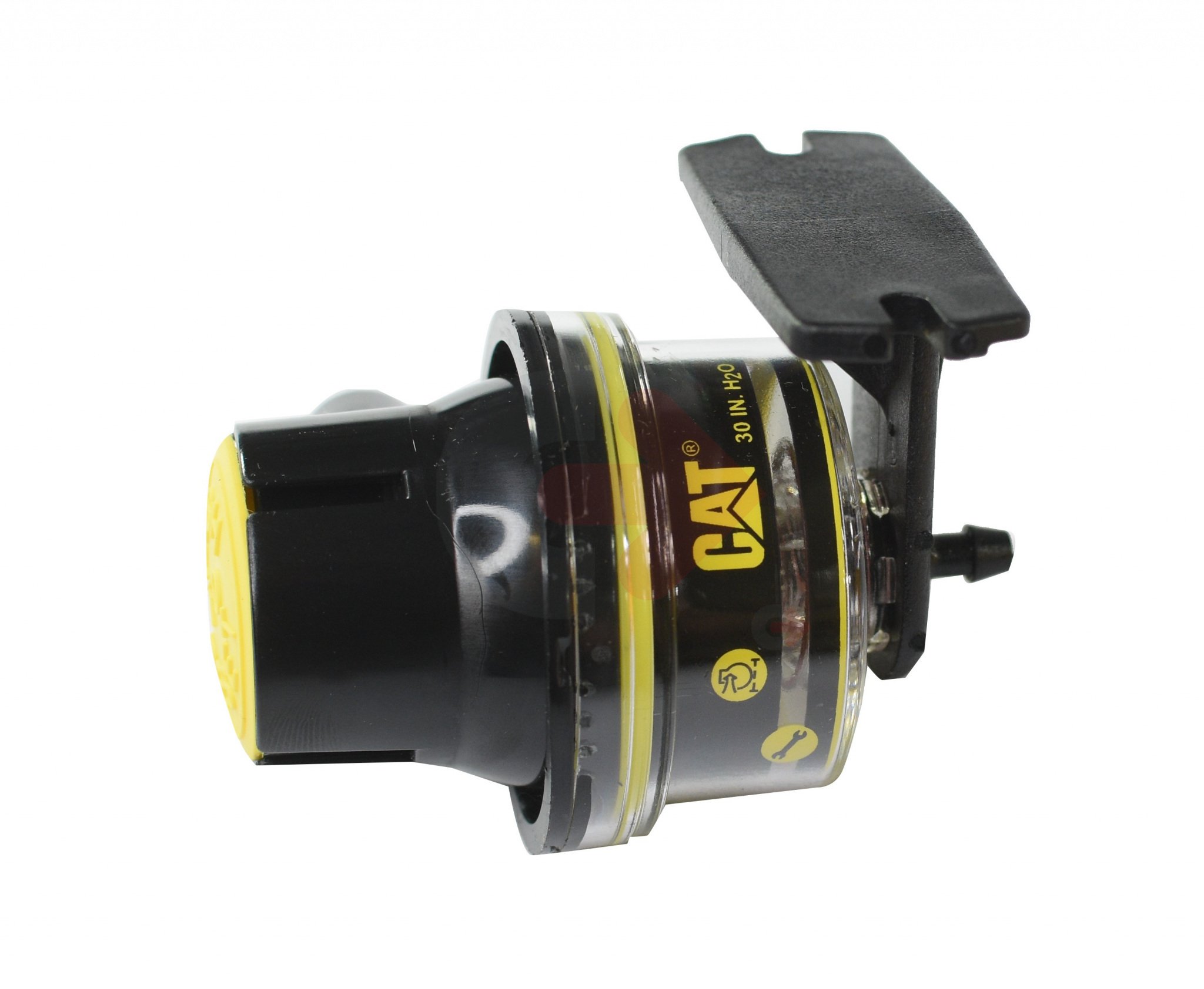 Indikátor znečištění vzduchového filtru používaný ve stavebních strojích CATERPILLAR.