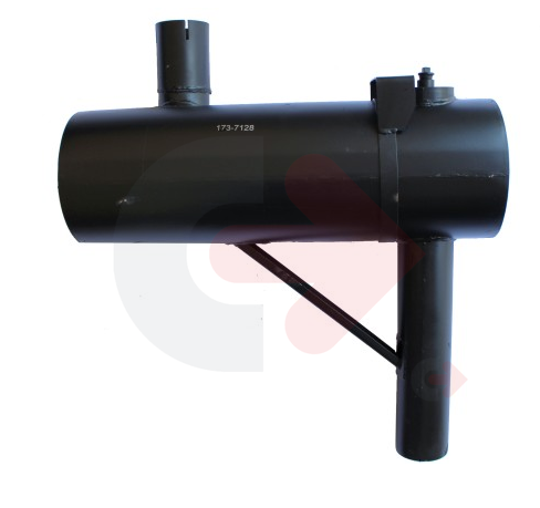 Tlumič výfuku používaný ve stavebních strojích Caterpillar.