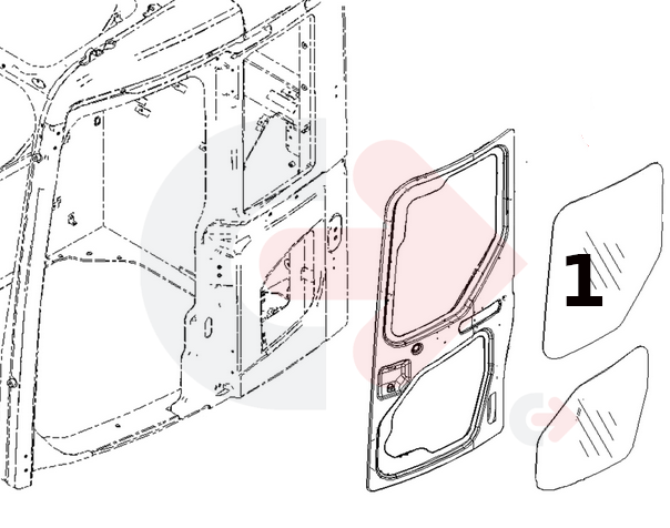Horní sklo dveří pro minirýpadla, kolová rýpadla a pásová rýpadla Komatsu.