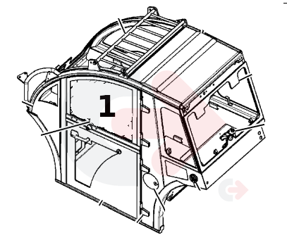 Sklo horních dveří pro teleskopické nakladače CATERPILLAR.