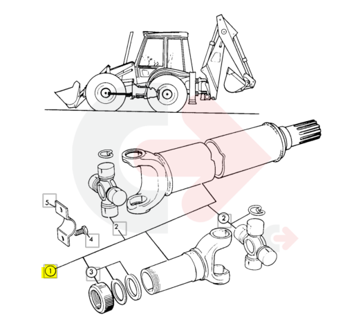 Přední hřídel používaná u rýpadlo-nakladačů JCB 4CX.