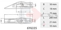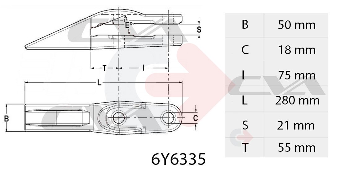 Zub E32 pro lžíci rypadla s roztečí šroubů 75-80 mm.