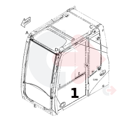 Sklo dolních dveří pro kolová rýpadla CATERPILLAR.