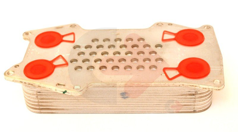 Chladič motorového oleje používaný ve stavebních strojích Volvo.