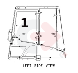 Sklo dveří, levá horní strana používané ve stavebních strojích CATERPILLAR.
