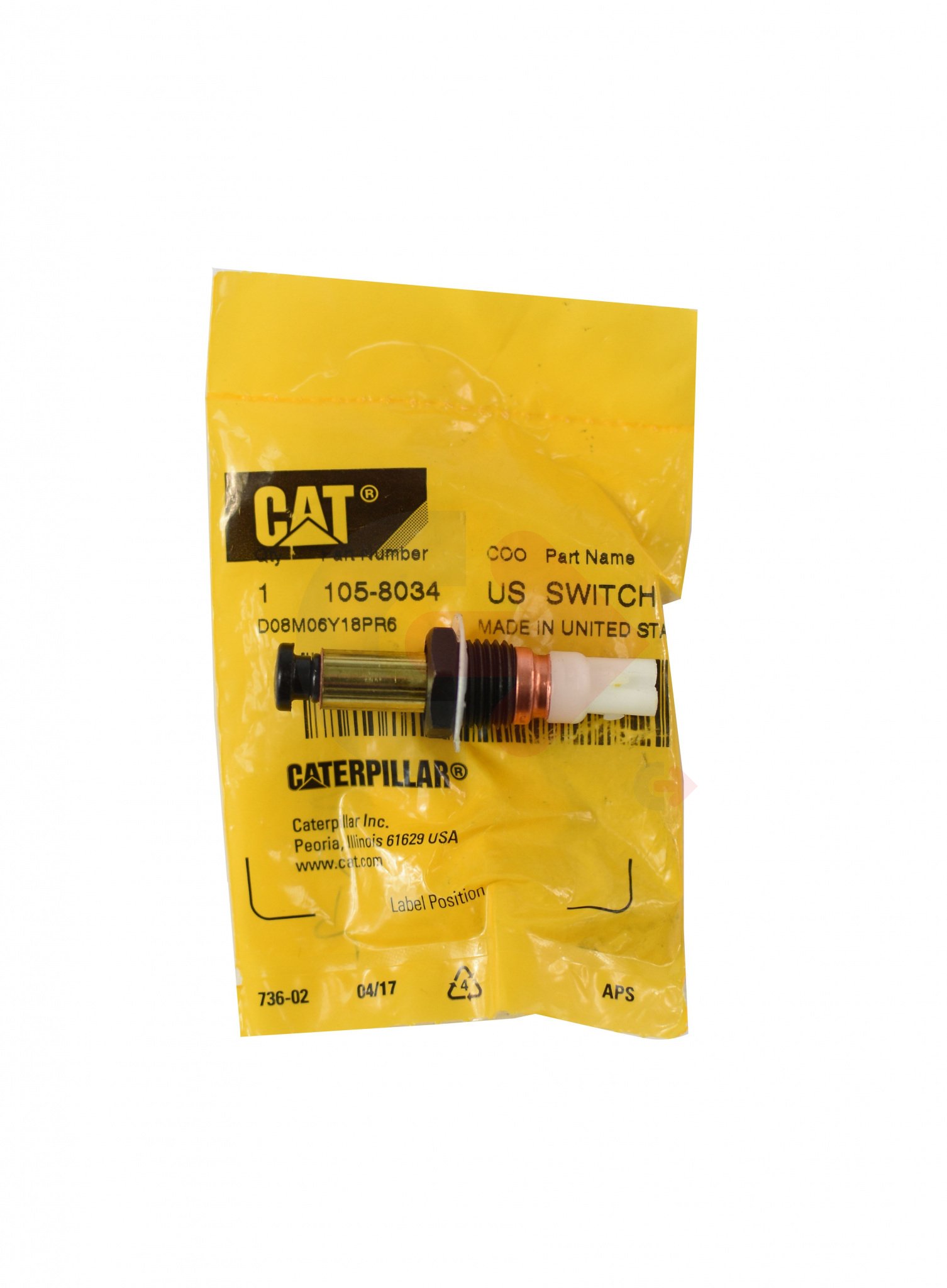 Senzor zastavení pod brzdovým pedálem používaný u stavebních strojů CATERPILLAR.