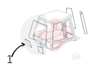 Čelní sklo vpravo dole laminované (bezpečnostní sklo) pro rýpadlo-nakladače JCB.